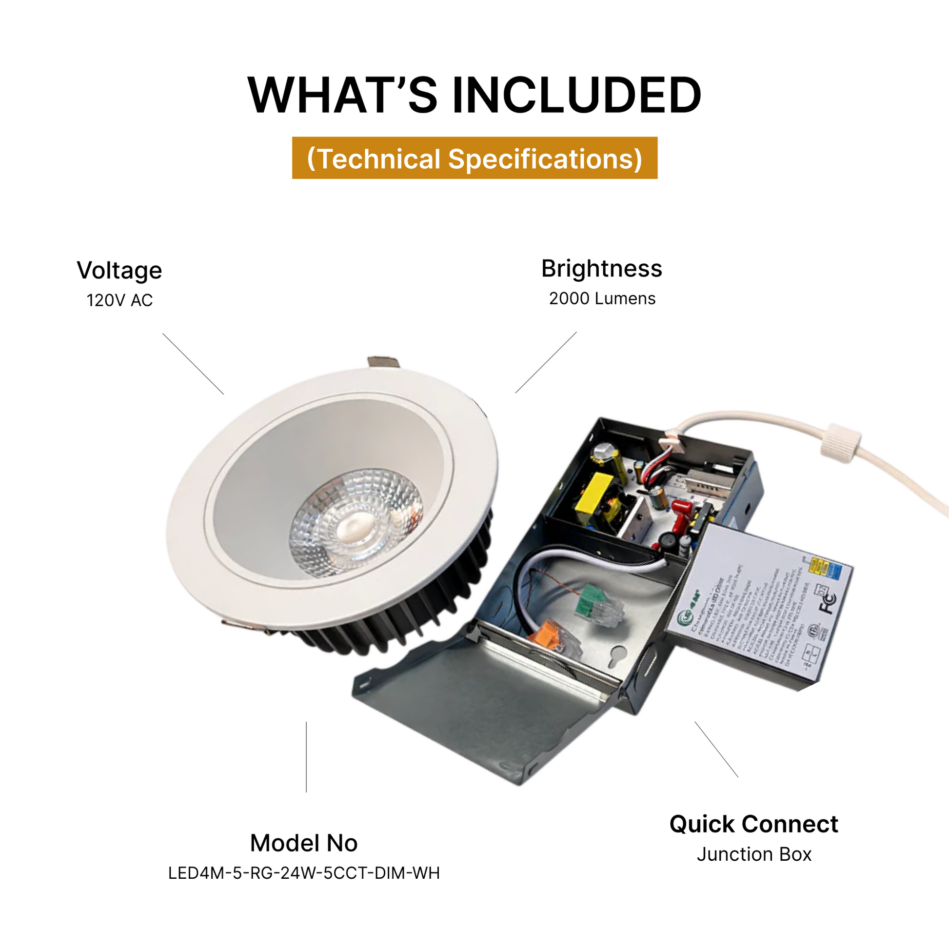 - 5-CCT Selectable: Switch between 2700K, 3000K, 3500K, 4000K, and 5000K directly from the junction box.