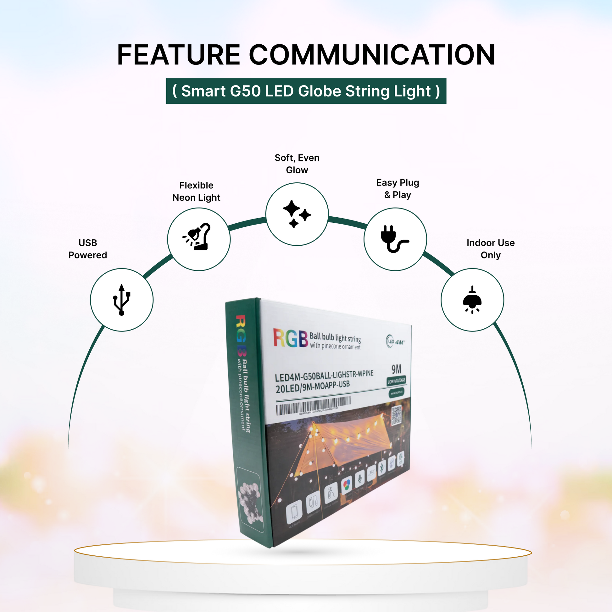 Smart G50 LED Globe String Light - 9M (30ft), 20 Bulbs, App & Remote Control, USB Powered